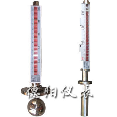 根据浮力原理,浮子在测量管内随液位的升降而上、下移动,浮子内的长久磁钢通过耦合作用,驱动红、白色翻柱翻转180°,液位上升时翻柱由白色转为红色,下降时由红色转为白色,从而实现液位指示。